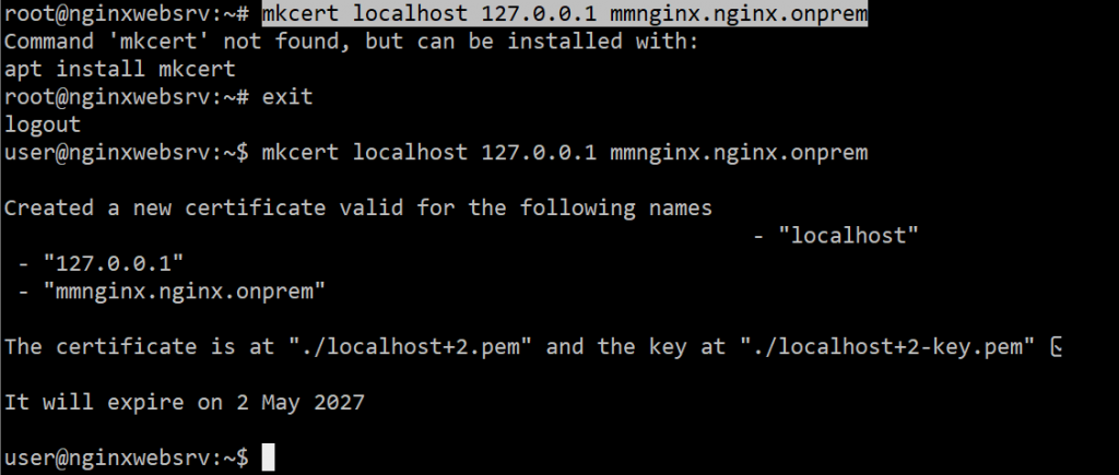 mkcert localhost 127.0.0.1 mmnginx.nginx.onprem