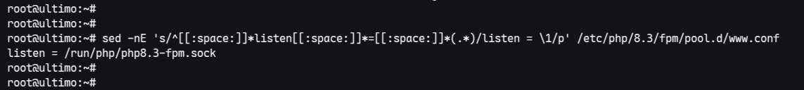 sed -nE 's/^[[:space:]]*listen[[:space:]]*=[[:space:]]*(.*)/listen = \1/p' /etc/php/8.3/fpm/pool.d/www.conf